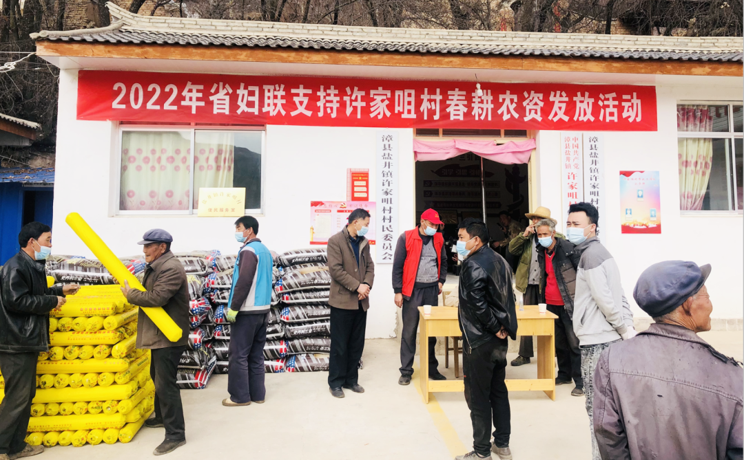为深入贯彻落实习近平总书记重要讲话精神,切实履行帮扶单位责任,助推帮扶村实现巩固脱贫攻坚成果与乡村振兴有效衔接,3月22日,省妇联在漳县盐井镇立桥山村、许家咀村和大草滩镇三友村,组织开展支持春耕农资发放活动。