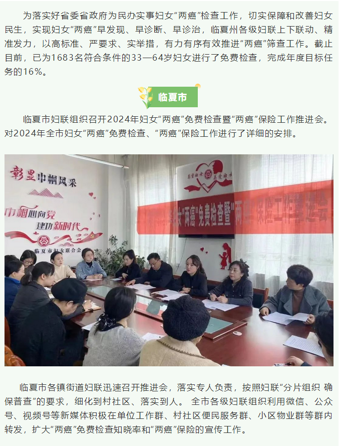 临夏州妇女“两癌”检查工作顺利推进