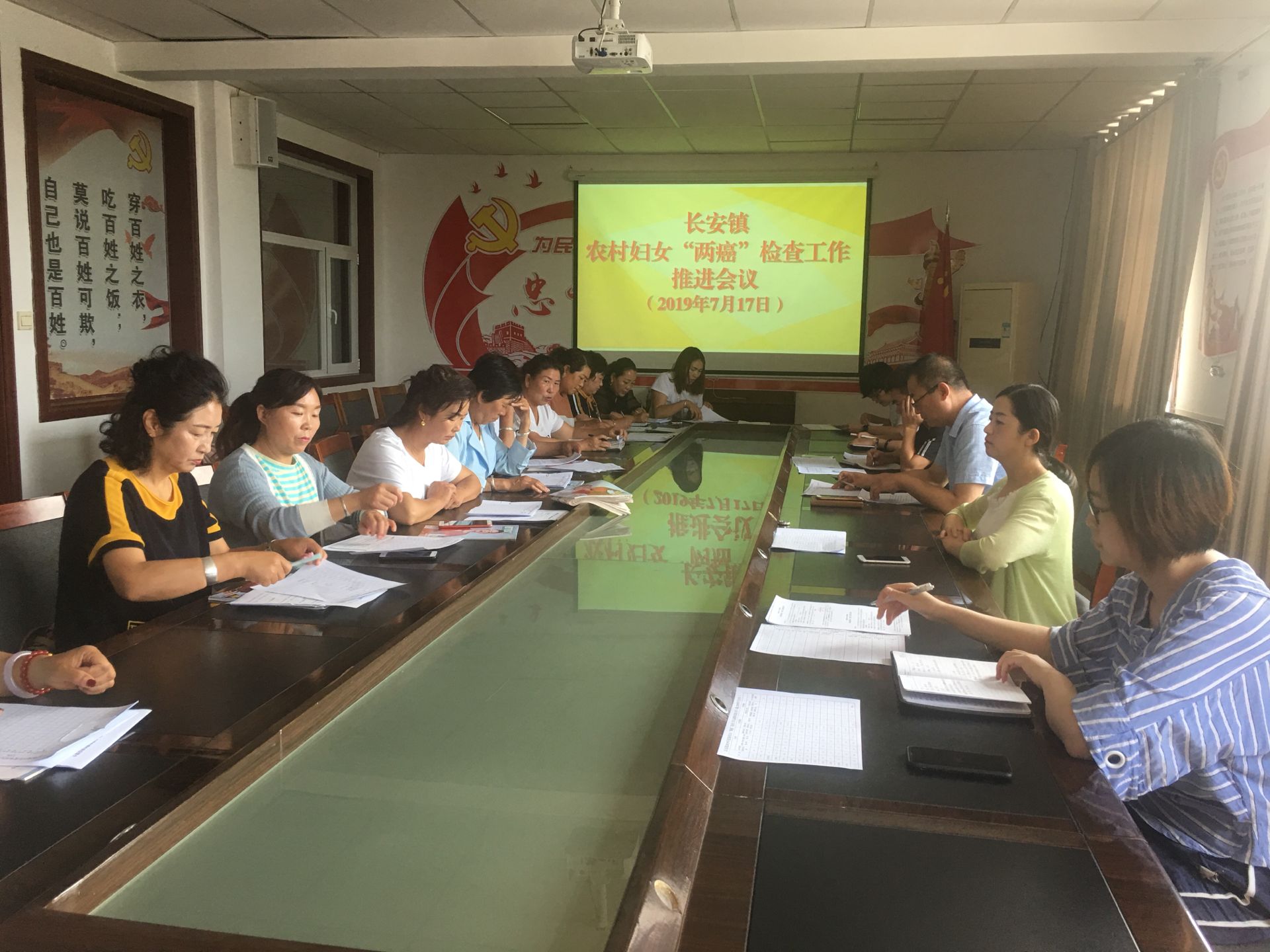 7月17日上午,长安镇农村妇女“两癌”检查工作推进会在镇政府三楼党委会议室召开,镇妇联、镇卫计办分管领导、工作人员及各村妇联主席参加会议。