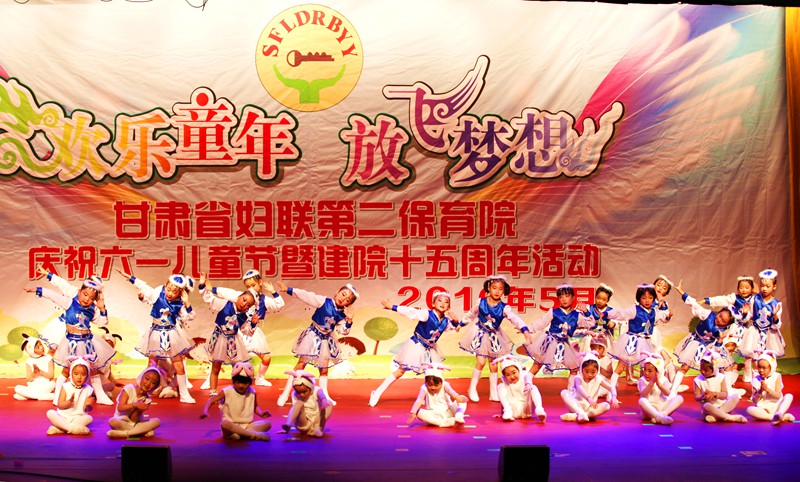舞欢跃,歌声起。为庆祝即将到来的六一儿童节,5月31日上午,省妇联第二保育院的小朋友们在位于雁滩的甘肃省妇女儿童活动中心,举行了庆祝六一儿童节暨建院十五周年活动。省妇联党组书记、主席苏君,省妇联在家领导康娅红、胡兰、董晓玲,省妇联机关各部室负责人,以及对省妇联第二保育院的各项工作给予帮助和大力支持的兰州文理学院、兰州女子中等专业学校、中国人民解放军九六三五一部队、兰房物业等相关单位,及百余位小朋友和家长欢聚一堂,共同庆祝六一儿童节。