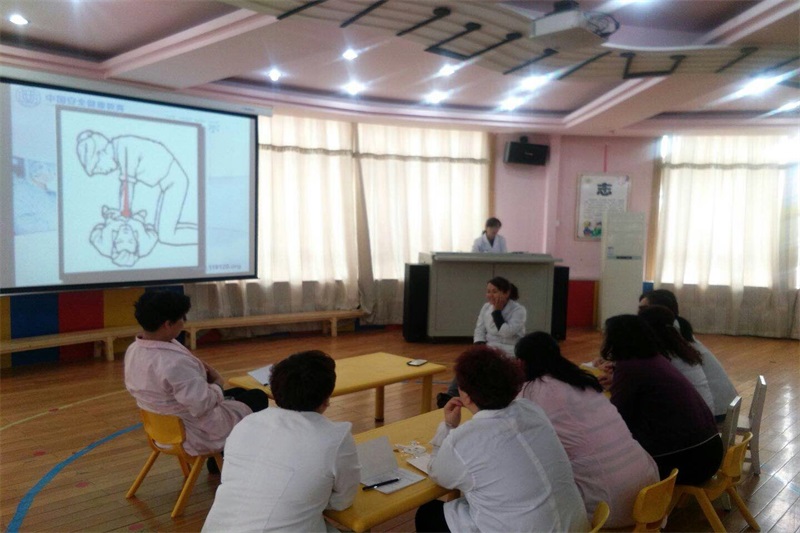 为了提高保教人员遇到突发事件的急救能力,由院保健医负责对全体保教人员进行了一次急救常识培训,通过学习大家初步掌握了摔伤、烫伤、吸入异物、