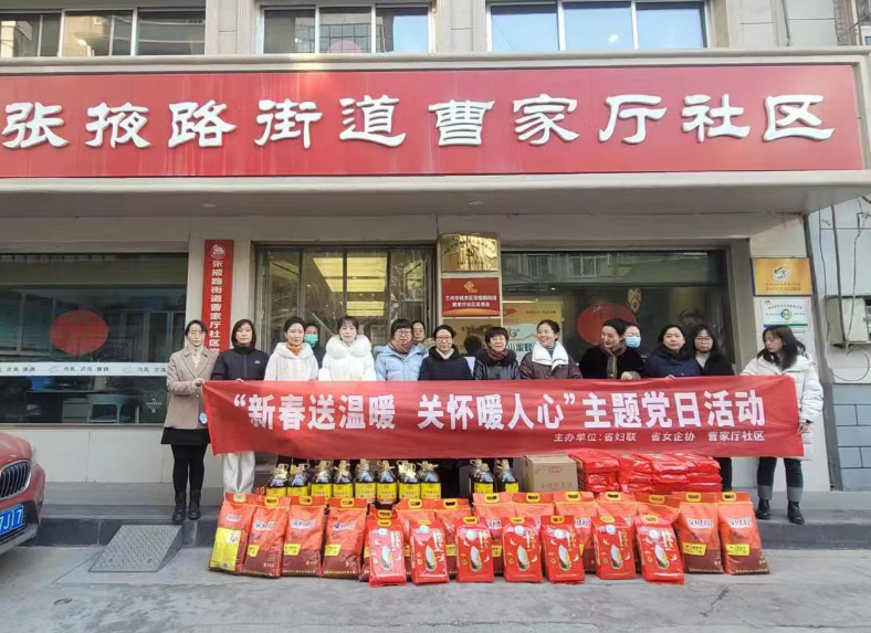 为深入贯彻落实习近平总书记关于“对困难群众要格外关注、格外关爱、格外关心”的重要指示精神,加强特殊困难群众关爱帮扶工作,按照省委省政府关于元旦春节期间做好困难群众关爱帮扶工作的安排部署,1月30日,省妇联联合省女企业家协会、城关区张掖路街道曹家厅社区,开展“新春送温暖 关怀暖人心”主题党日活动,把党和政府的温暖送到了群众身边。
