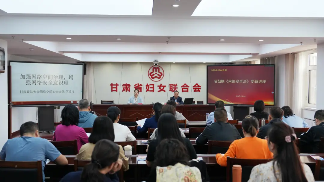 为进一步提升国家网络安全宣传周宣传覆盖面和影响力,营造安全、健康、文明、和谐的网络环境。9月11日,甘肃省妇联、甘肃省总工会联合邀请省政法大学网络空间安全学院党委书记、硕士生导师何珍祥教授在线开展了《网络安全法》专题讲座。