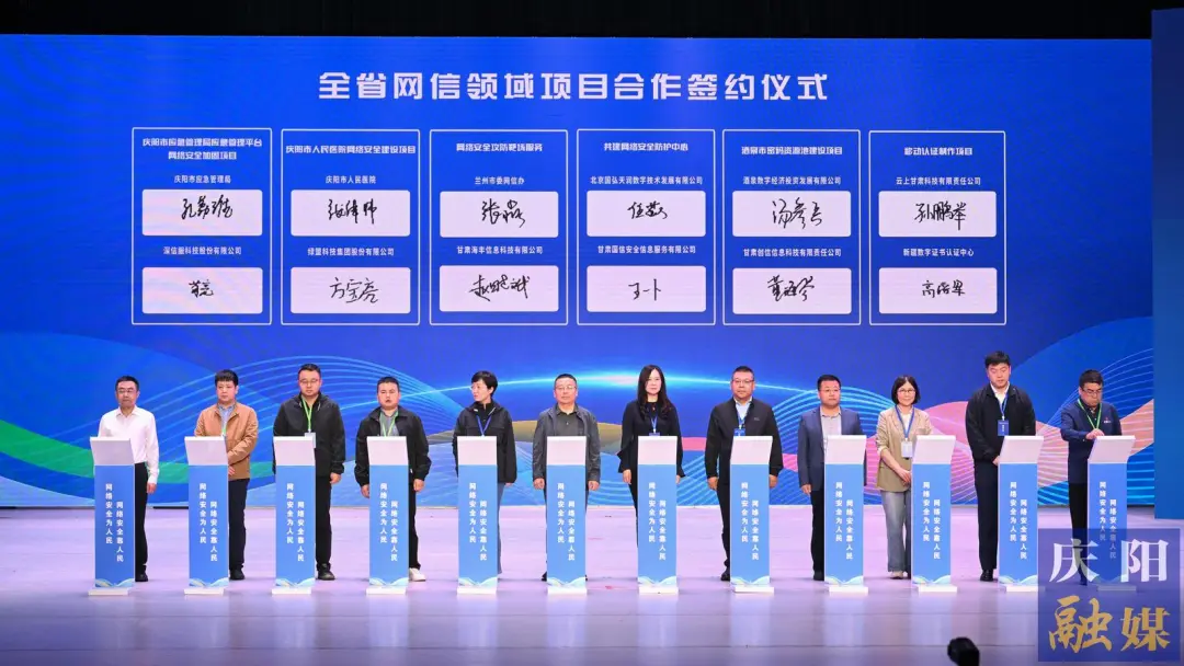 开幕式上,全体人员观看了《2024年甘肃省重点网络安全风险事件典型案例》,网络平台代表签署了《个人信息权益保护承诺书》,举行了全省网信领域项目合作签约仪式、2024年甘肃省青少年网络安全知识竞赛和网络安全实战演练活动颁奖仪式、2025年甘肃省网络安全宣传周开幕式举办城市交接仪式。