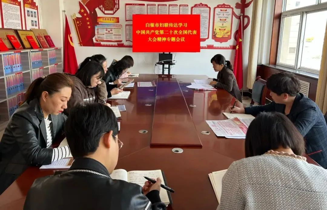 10月24日上午,白银市妇联召开党组理论中心组(扩大)学习会议,专题传达学习党的二十大精神。会议传达学习了党的二十大报告,学习了《中共二十届一中全会公报》《中国共产党第二十届中央纪律检查委员会第一次全体会议公报》《中国共产党第二十次全国代表大会关于十九届中央委员会报告的决议》《中国共产党第二十次全国代表大会关于十九届中央纪律检查委员会工作报告的决议》及《中国共产党第二十次全国代表大会关于〈中国共产党章程(修正案)〉的决议》等内容。
