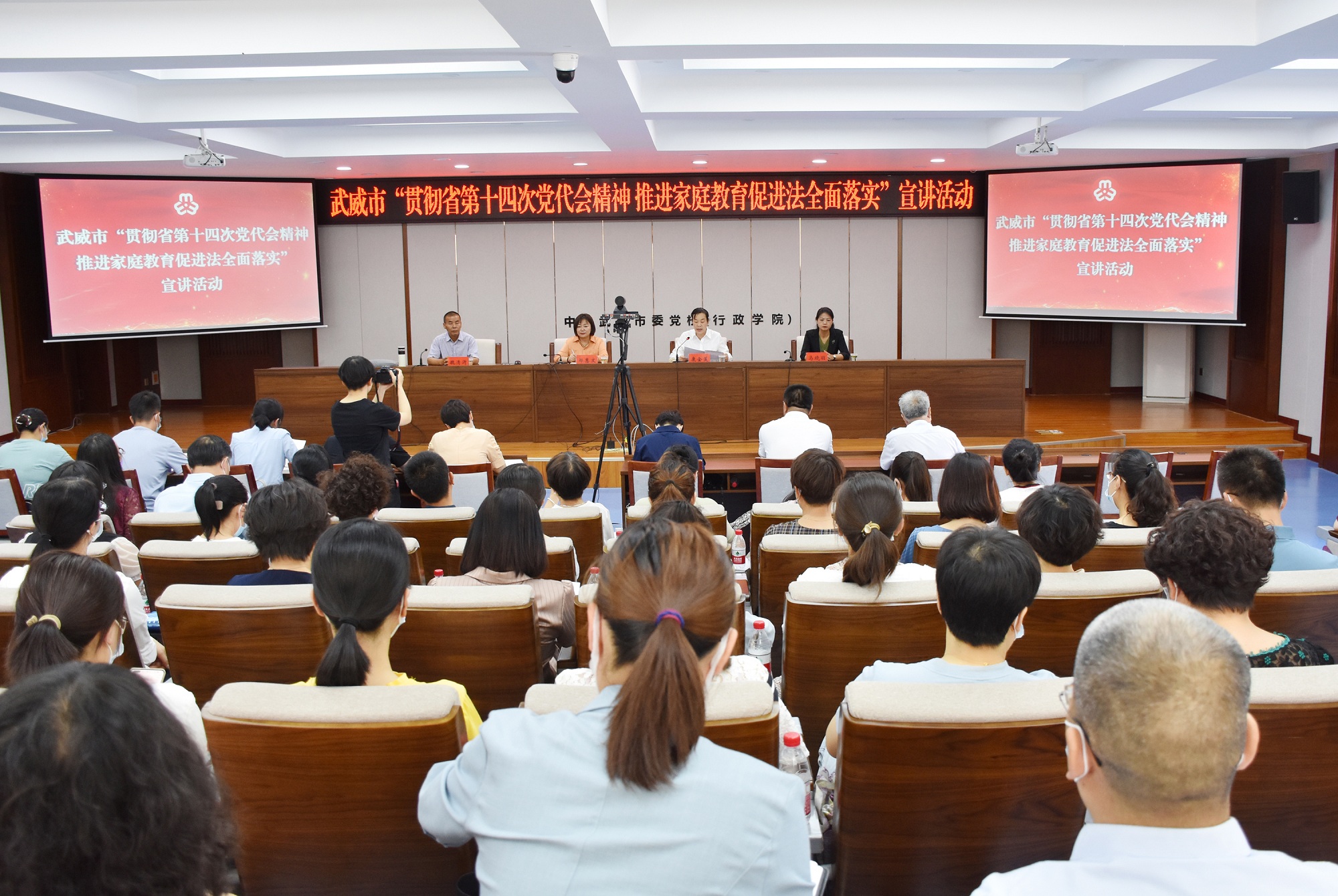 为深入学习宣传贯彻习近平总书记关于注重家庭家教家风建设重要论述和省第十四次党代会精神,进一步推动家庭教育促进法落实到家庭,全面提升家庭教育水平,发挥家庭教育在立德树人、文明培育和推动基层社会治理、助力“六个新武威”建设中的重要作用,以优异成绩迎接党的二十大胜利召开。市妇联、市教育局开展“贯彻省第十四次党代会精神 推进家庭教育促进法全面落实”宣讲活动。