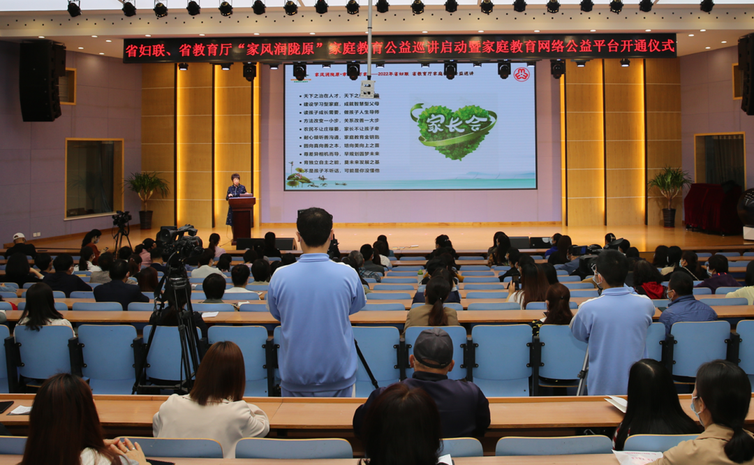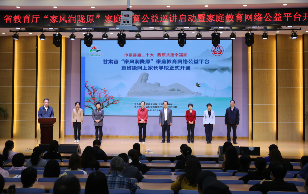省妇联党组书记、主席黄爱菊宣布省妇联、省教育厅2022年度“家风润陇原·幸福千万家”——家庭教育公益巡讲活动正式启动,甘肃省“家风润陇原”家庭教育网络公益平台暨省级网络家长学校正式开通。