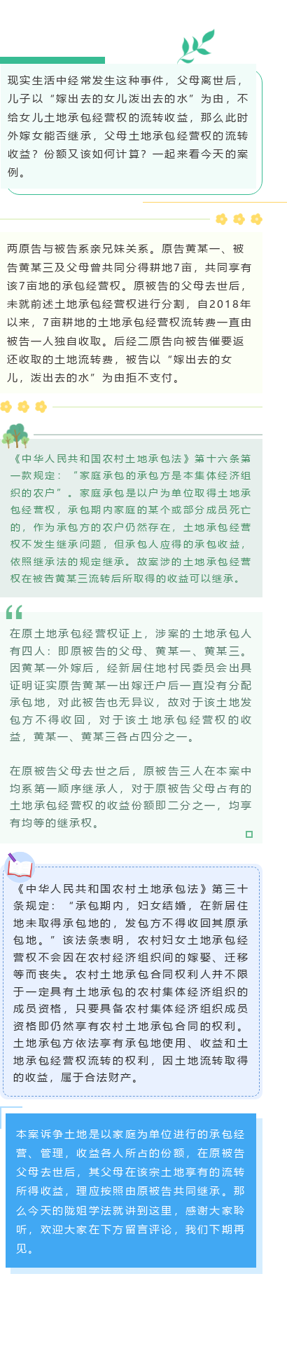 陇姐学法|外嫁女能否继承父母的土地流转收益?