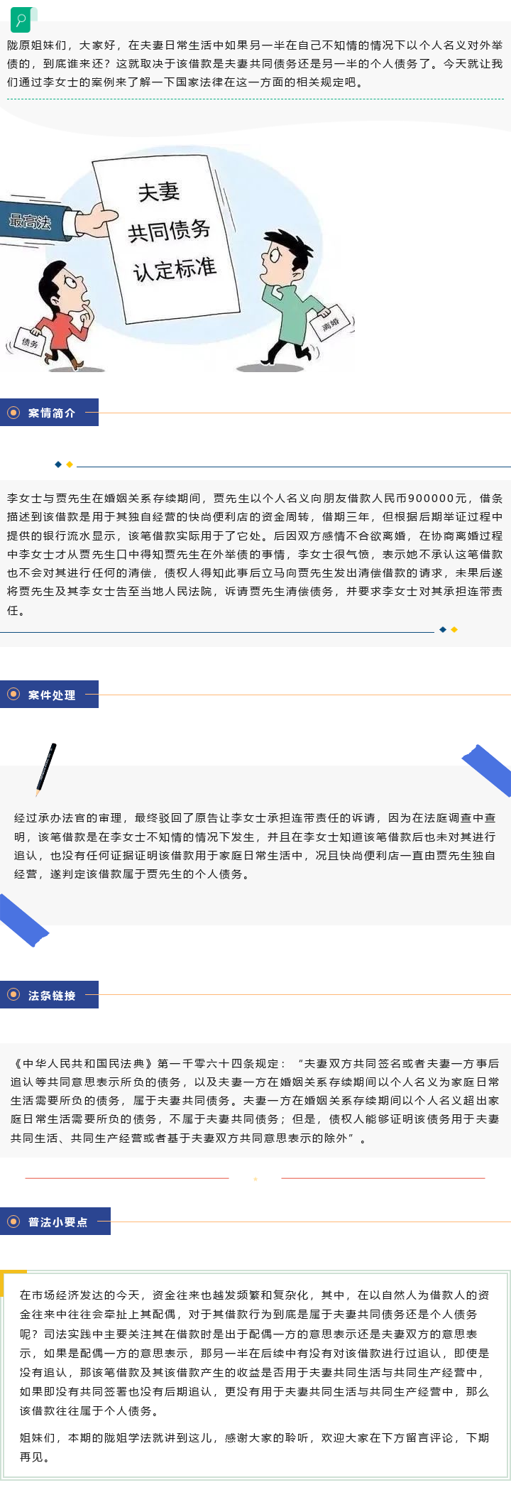 陇姐学法|配偶以个人名义私自对外举债谁来还?