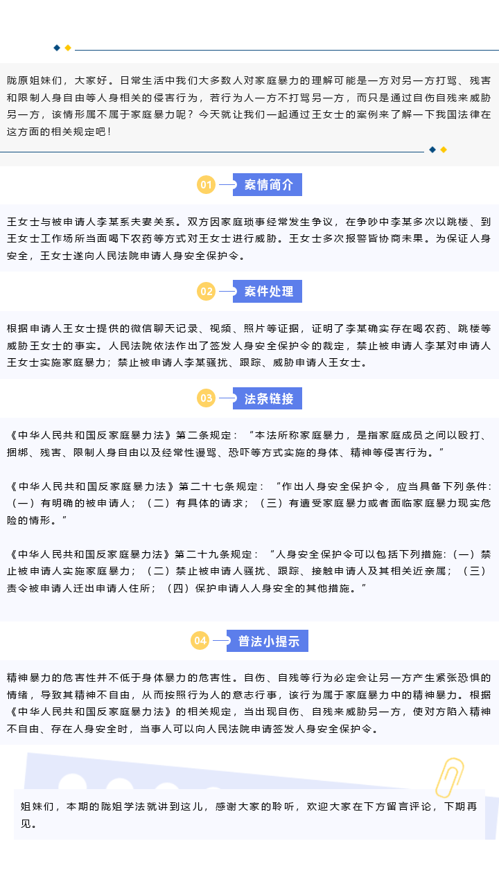 陇姐学法 | 通过自伤自残威胁他人也属家庭暴力