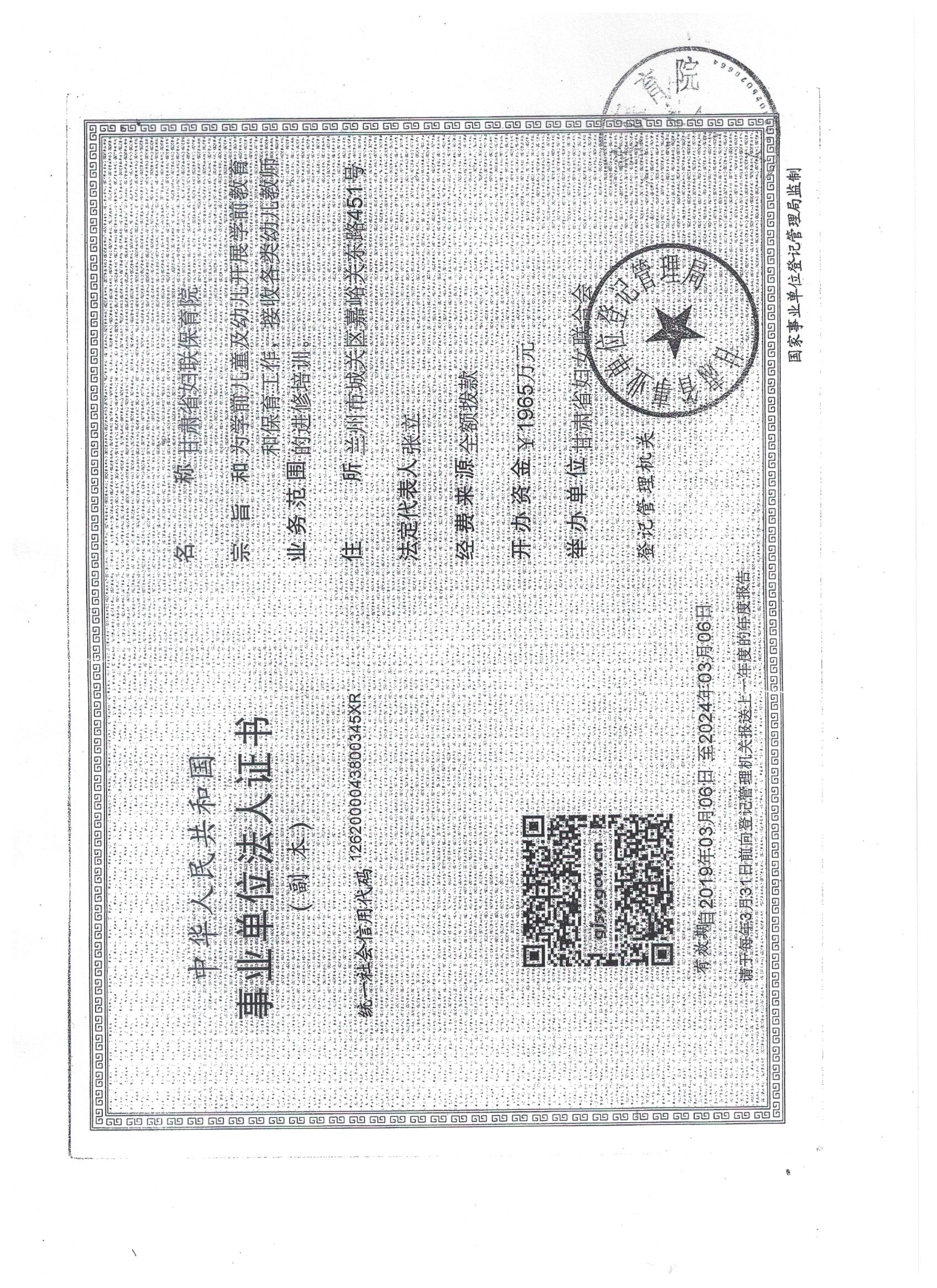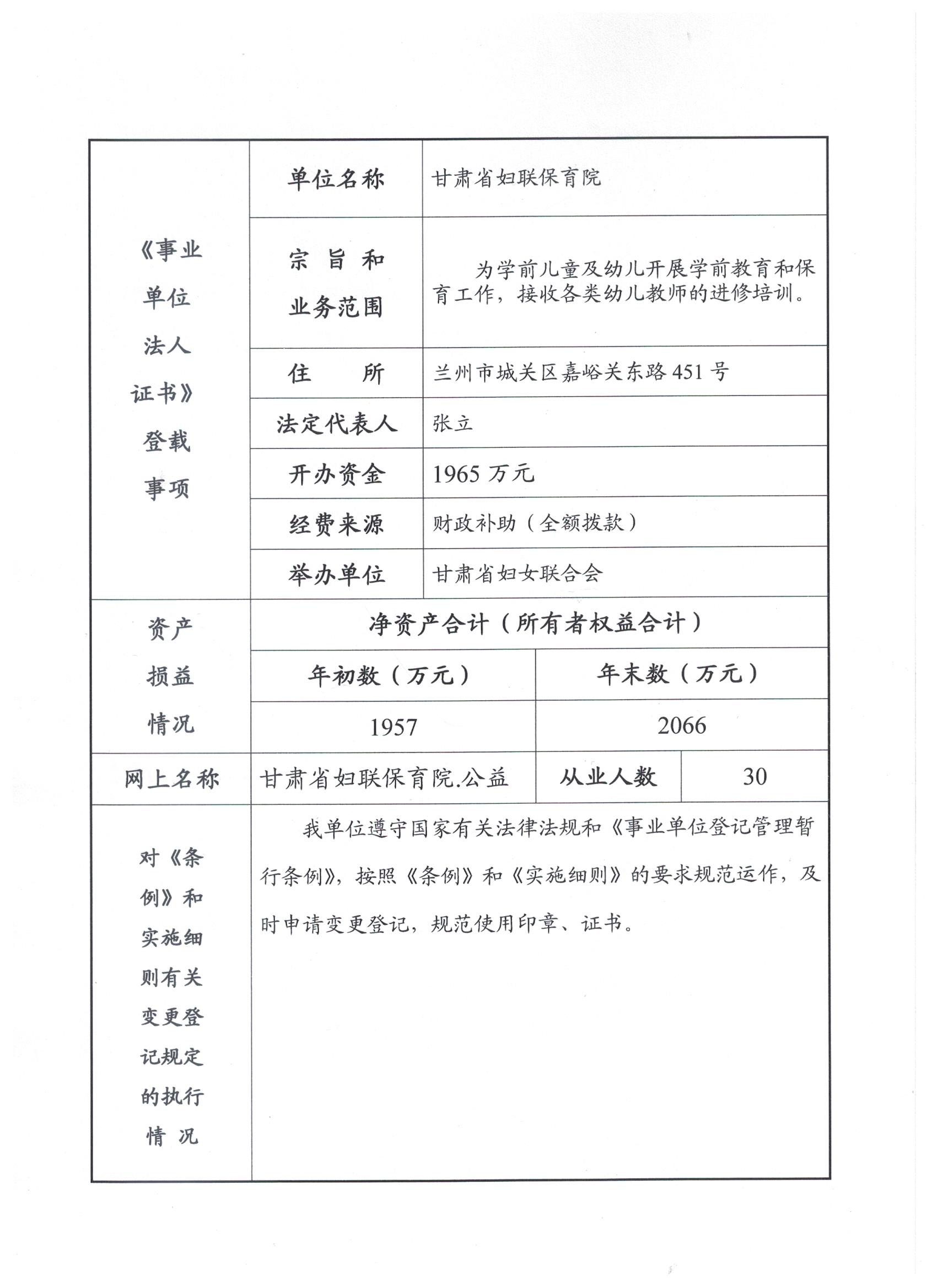 甘肃省保妇联育院事业单位年度法人报告书(2021年度)