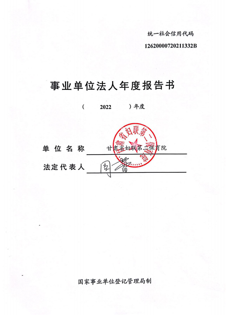 甘肃省妇联第二保育院事业单位法人年度报告书