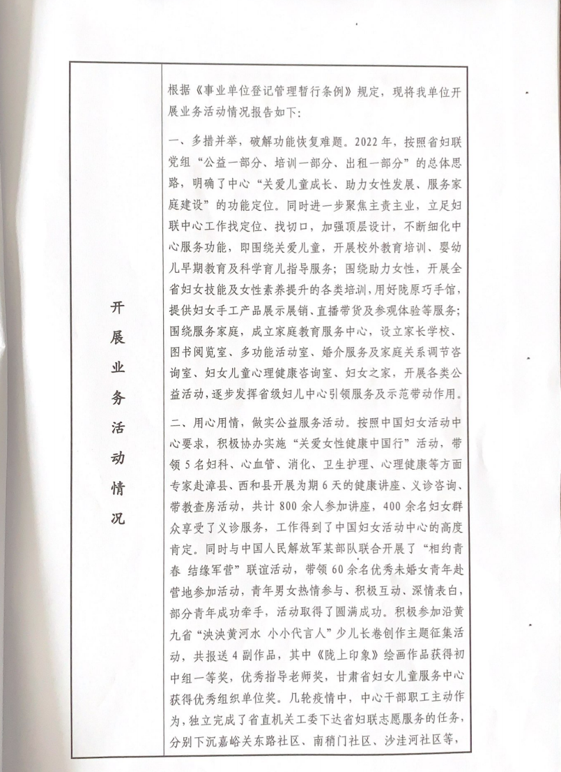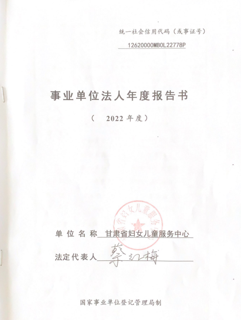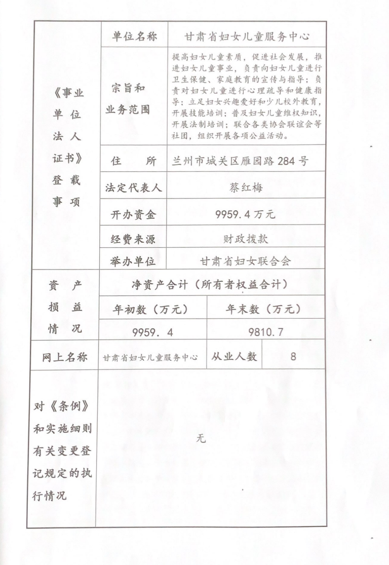 甘肃省妇女儿童服务中心事业单位法人年度报告书