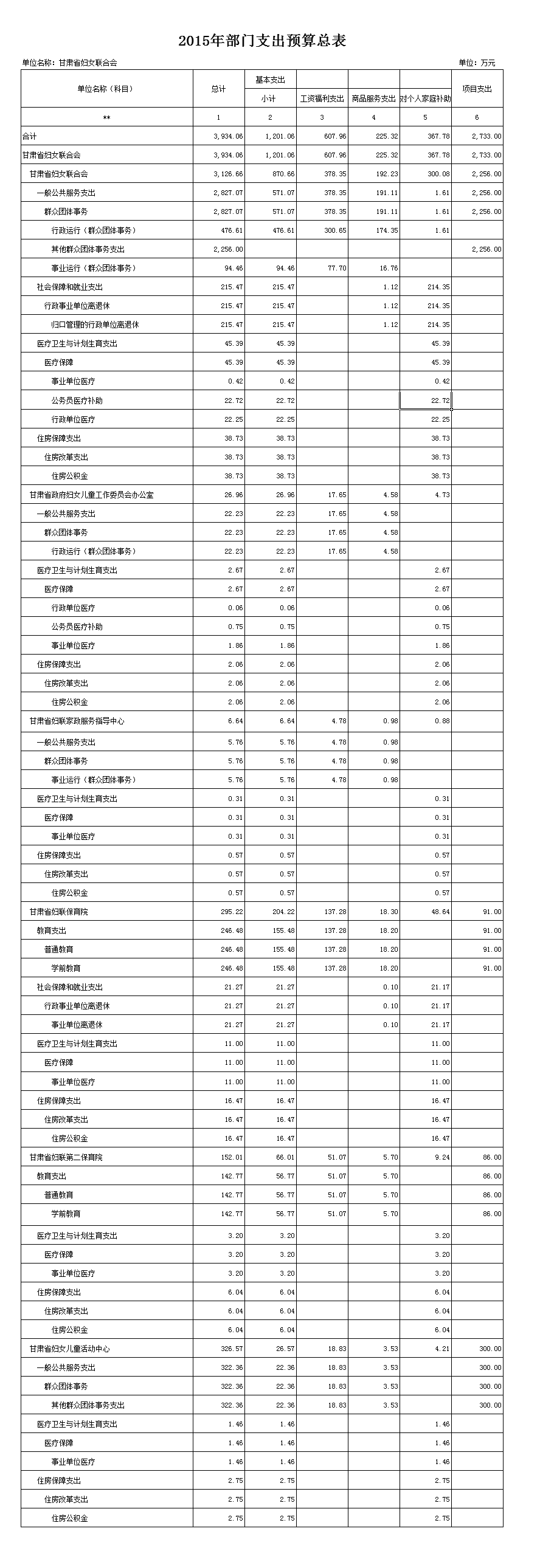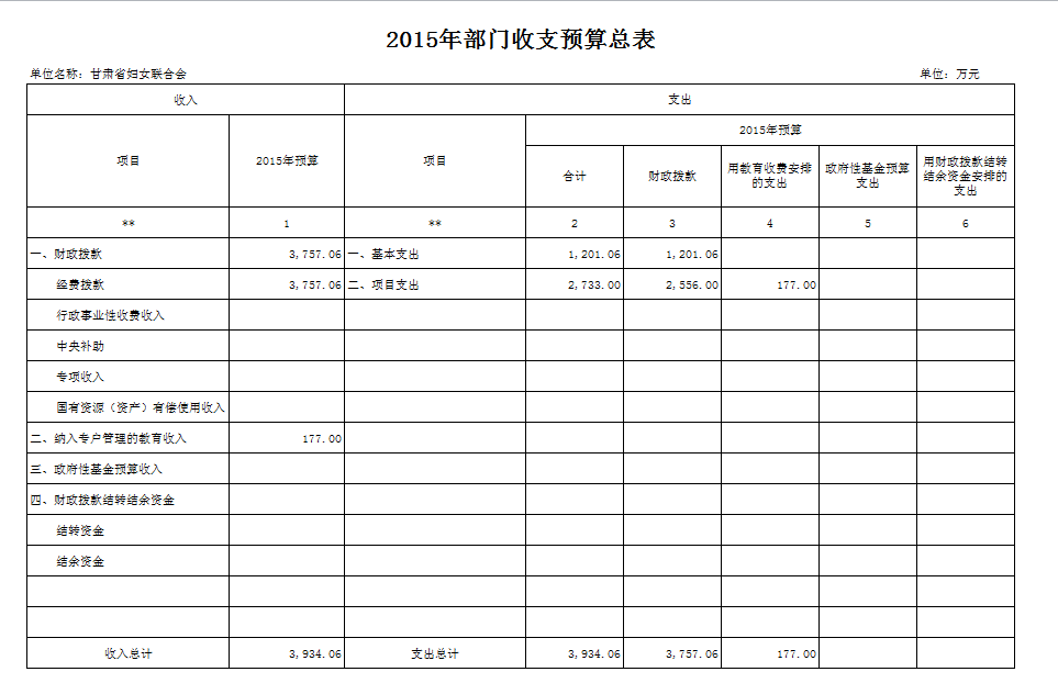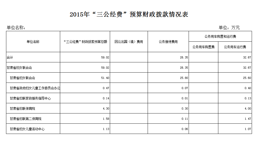 甘肃省妇联2015年部门预算公开表