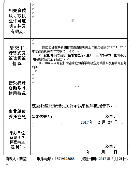 甘肃省妇联第二保育院事业单位法人年度报告书