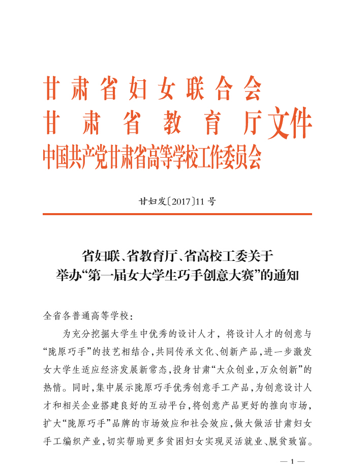 省妇联、省教育厅、省高校工委关于举办 “第一届女大学生巧手创意大赛”的通知
