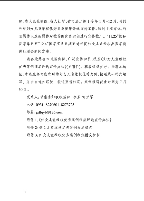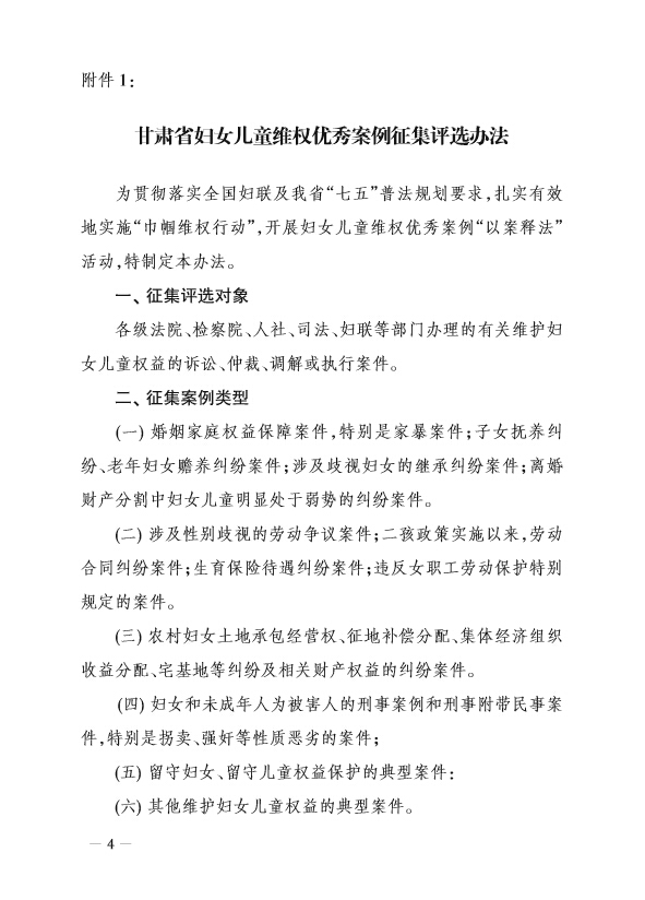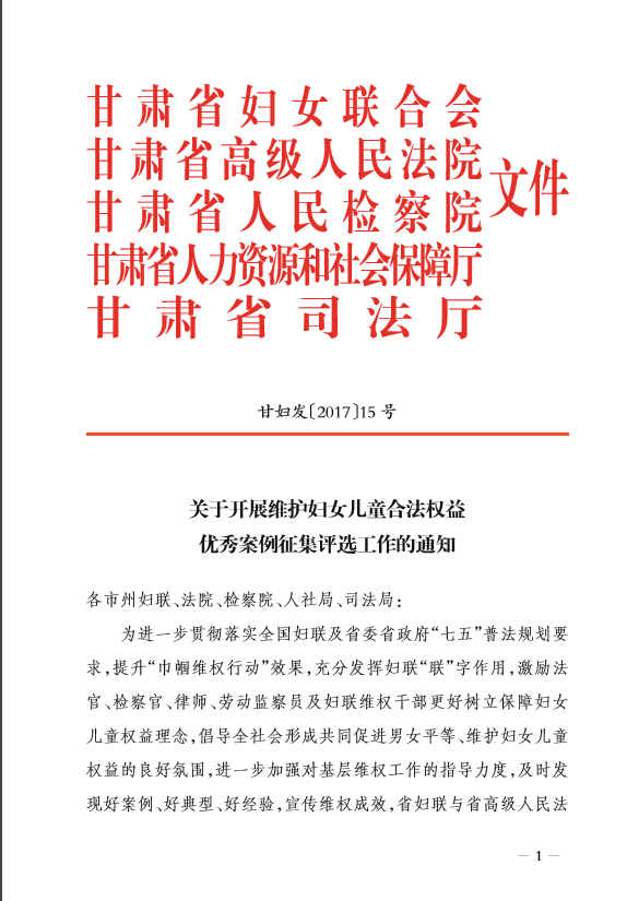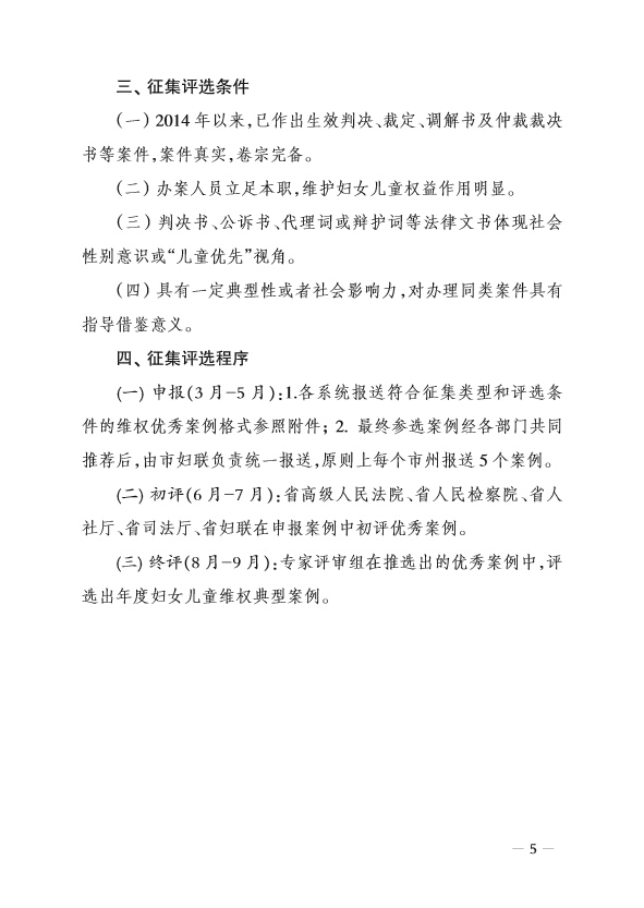 关于开展维护妇女儿童合法权益优秀案例征集评选工作的通知