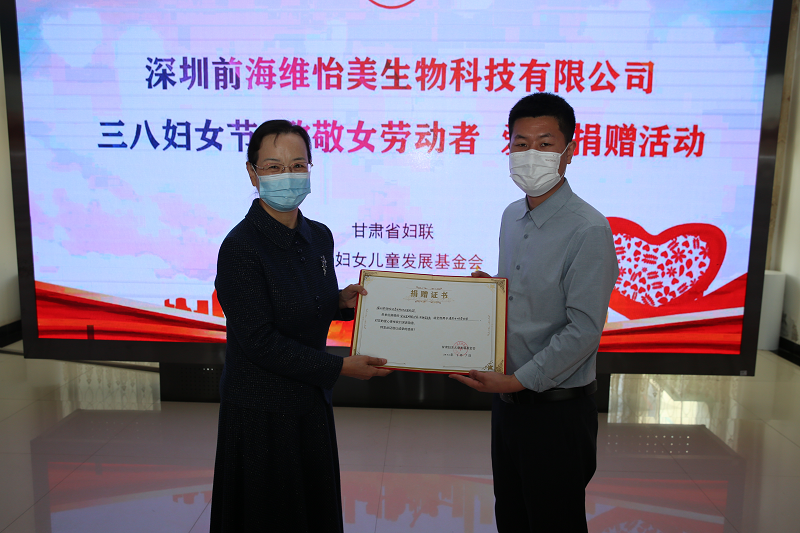 3月8日,深圳前海维怡美生物科技有限公司,捐赠瞬恋护花三宝抑菌套盒700盒,价值13.86万元,为奋战在一线女性工作人员的健康保驾护航。