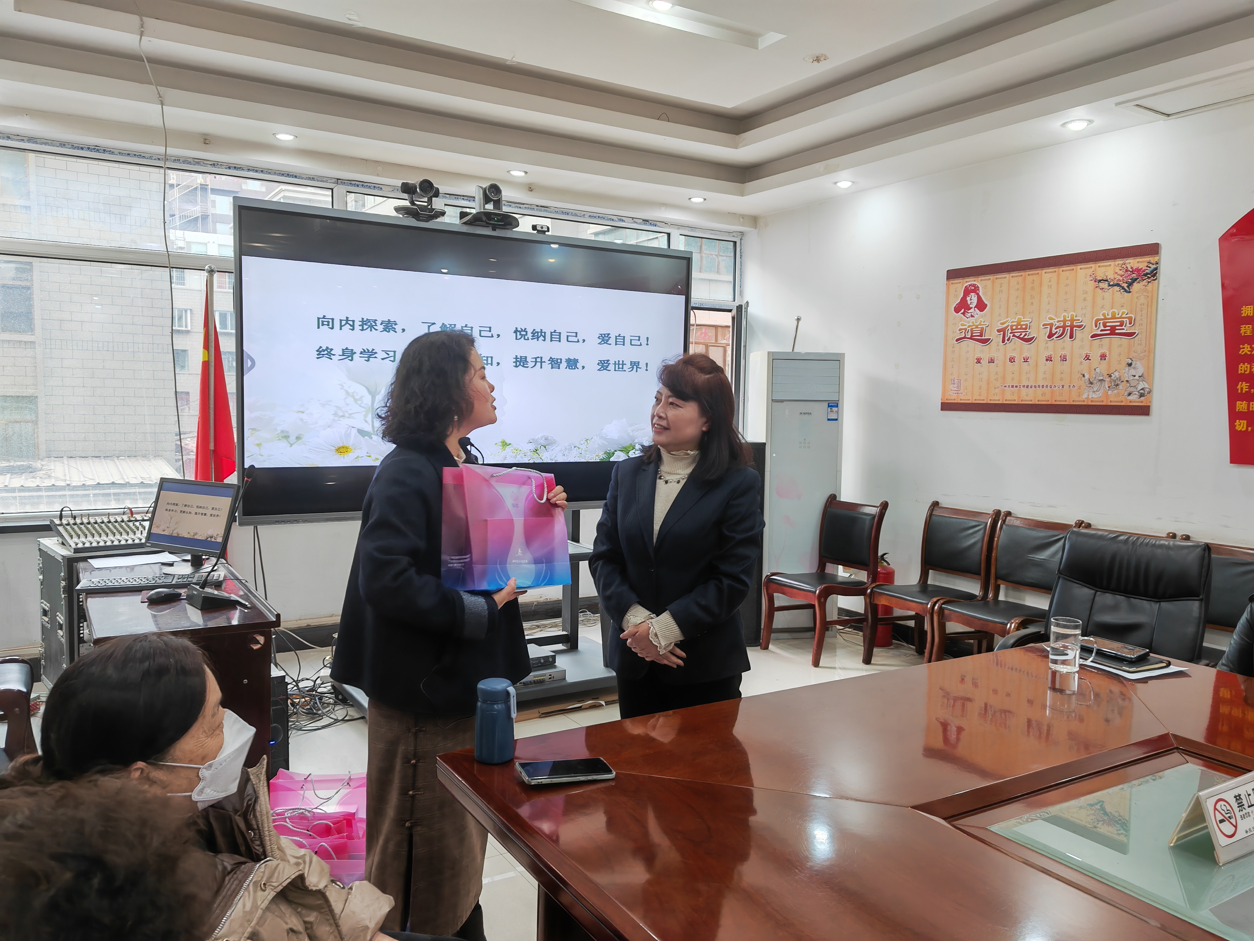 整个讲座形式新颖、紧贴实际生活,引发了大家的强烈共鸣。讲座结束后,甘肃妇女儿童发展基金会为基层女性工作人员发放了550盒“瞬恋”护花三宝抑菌盒,价值10.89万元。