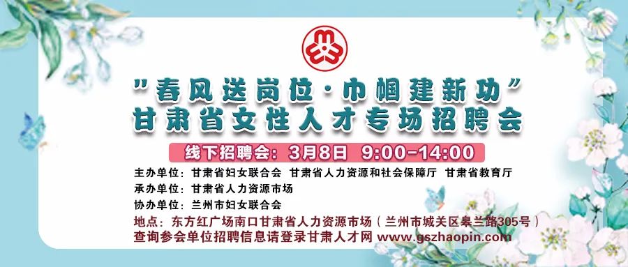 庆“三八”系列活动 | 关于举办“春风送岗位•巾帼建新功”甘肃省女性人才专场招聘会的公告