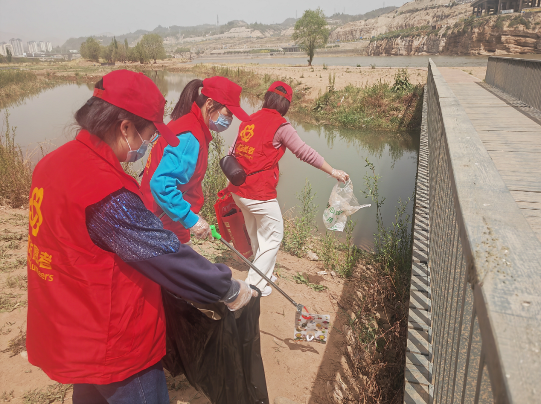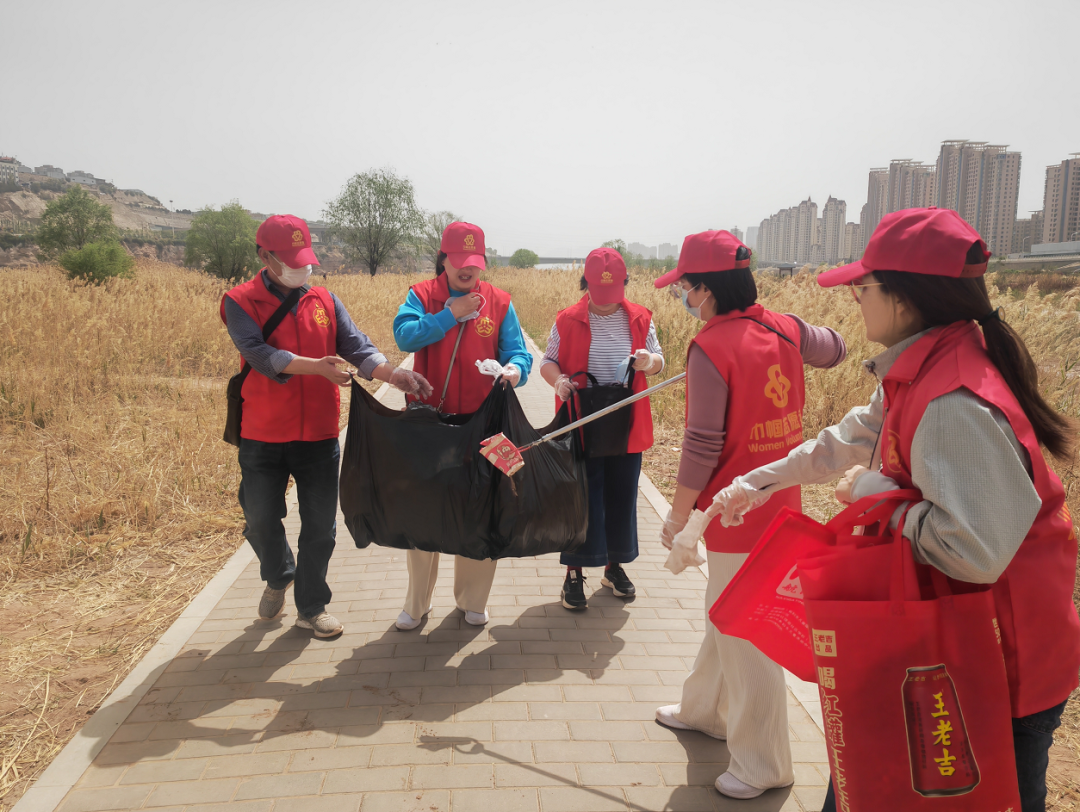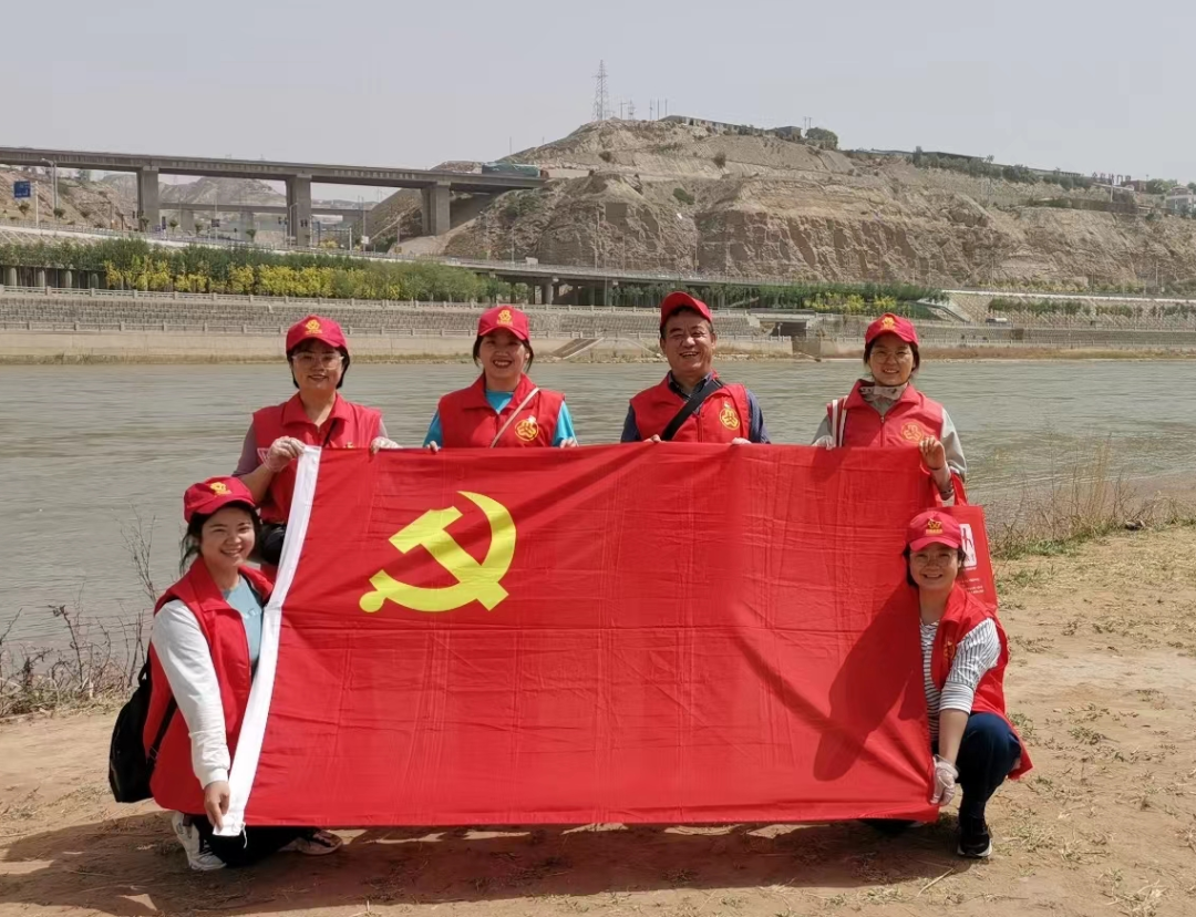 五一前夕,省妇联妇儿工委办党支部组织党员来到黄河沿线,开展捡拾垃圾志愿服务的主题党日活动。
