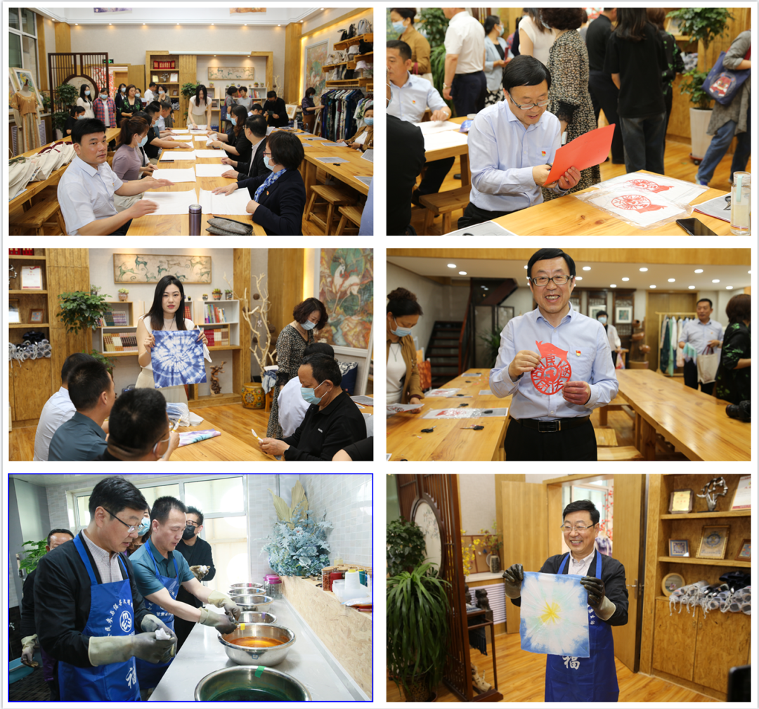 活动现场,非遗传承人丁永莲、杨会兰以及翊申文化工作人员为大家现场展示剪纸、掐丝画、扎染等传统手工技艺;并精心指导大家亲手体验扎染、剪纸等传统技艺。