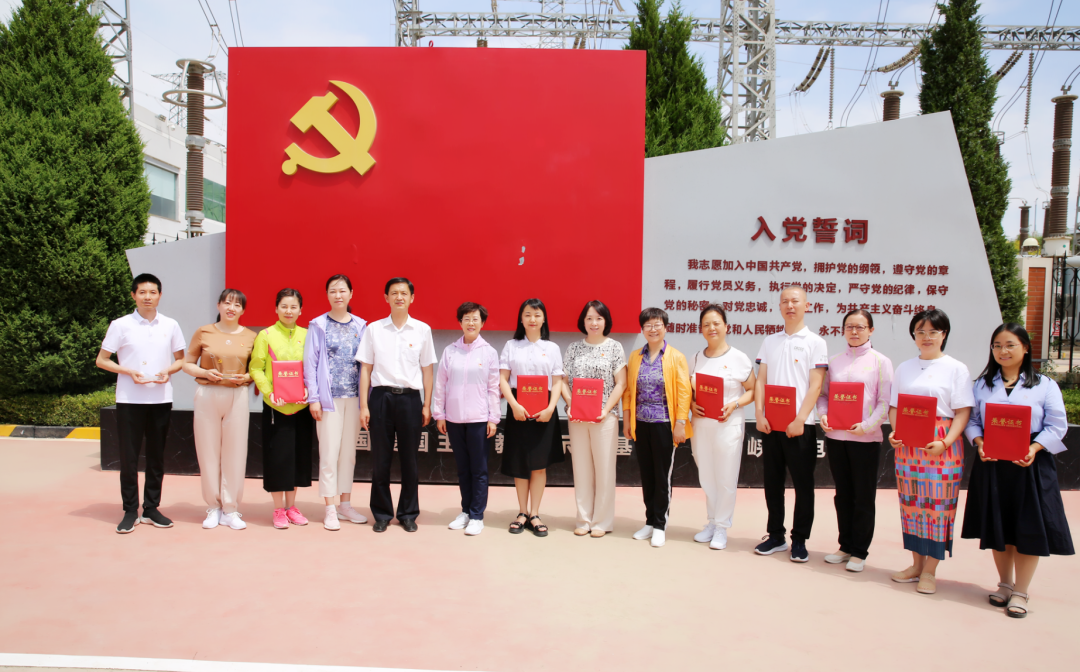 在国网甘肃电力公司刘家峡水电厂党建广场,全体党员面向党旗,举起右手,重温入党誓词。集体为3名党员过“政治生日”,送上党组织的祝福、期望,勉励全体党员牢记党员身份,牢记入党初心,继续在学习工作中发挥先锋模范作用。
