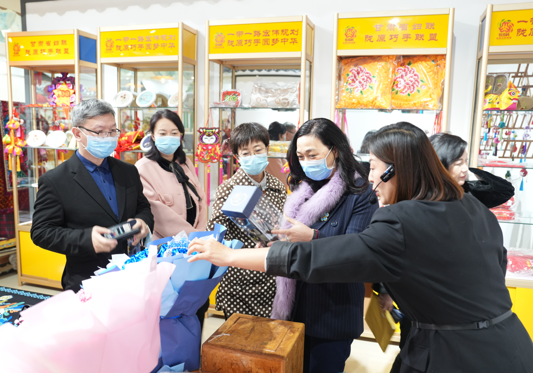 在“陇原巧手馆”,考察团对展示有我省各地50多家巧手企业的刺绣、草编、麦杆画、剪纸、掐丝画、香包、服饰、染缬等15类近千件传承、创新、创意巧手产品赞不绝口,对近几年我省各级妇联通过组织实施陇原巧手项目,带动20多万农村妇女依托手工技能实现居家灵活就业增收表示赞赏,并表达了搭建桥梁宣传推广我省巧手产品促进市场化的意愿。