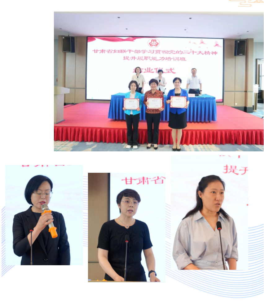 大家纷纷表示,通过此次培训,进一步提升了理论素养、坚定了理想信念,开阔了眼界思维、转变了思想观念、优化了知识储备、拓展了工作思路,进一步增强了更好引领服务联系妇女的信心决心,将把此次所学所思所悟运用到实际的工作中,追赶先进、补上短板,推动妇联工作高质量发展,为建设社会主义现代化幸福美好新甘肃贡献巾帼力量。