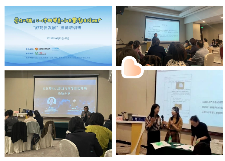 培训中,项目专家重点围绕“社区中民间游戏的开展”“社区中游戏盒子的使用、开展、运用”“儿童游戏的观察”“民间游戏”“社区育儿指导中心App开展”等内容开展,深刻分析了儿童游戏的基本特征、游戏的本质及“社区育儿指导中心”的活动流程及推广路径,引导学员参与式体验游戏例子的活动开展、价值功能等,通过实操演练,体验组织与指导婴幼儿游戏活动的多元方法,为学员提供了一定的思路与启发。我省项目团队成员珍惜培训机会,积极参与、踊跃互动,课余虚心求教、与兄弟省沟通交流,表现出高度的专业素质和高效优质的团队精神。通过培训,我省项目团队成员普遍认为该项目对我省推广家庭科学育儿理念和技能、提升社区家庭教育指导服务水平,提供了科学有力的专业指导。