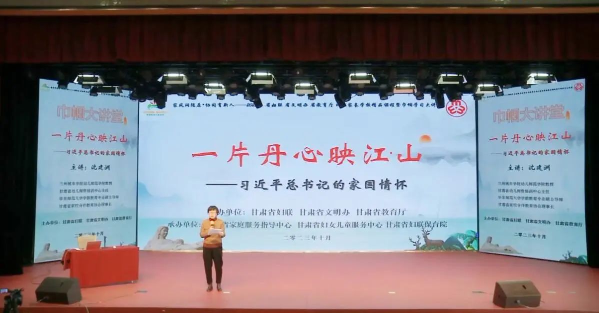 为了深刻感悟习近平总书记浓浓的家国情怀,推动人们在为家庭谋幸福、为他人送温暖、为社会做贡献的过程中提高精神境界、培育文明风尚。10月26日,省妇联、省文明办、省教育厅网上家长学校精品课程暨巾帼学习大讲堂之“一片丹心映江山-习近平总书记的家国情怀”专题讲座在甘肃省妇女儿童服务中心举办, 讲座由省妇联党组成员、副主席韩冰主持。