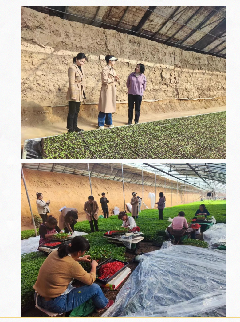 调研组一行先后深入巾帼乡村就业工厂甘肃陇豫润鑫农业发展有限公司、全省乡村振兴巾帼示范基地靖远县绿源蔬菜种植购销专业合作社、东湾镇大坝村、平堡镇金园村等地进行调研。