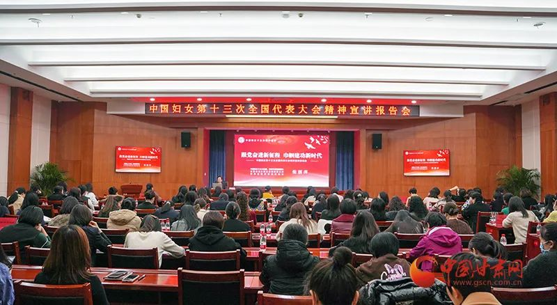 为深入学习宣传贯彻中国妇女第十三次全国代表大会精神,按照省妇联的安排部署,15日,全国妇联十三届执委、中国妇女十三大甘肃代表团副团长,甘肃省妇女联合会兼职副主席,甘肃省经济研究院党委委员、院长柴丽萍以《跟党奋进新征程 巾帼建功新时代》为题进行了集中宣讲。甘肃省发展和改革委员会、甘肃省司法厅、甘肃省人力资源和社会保障厅等8家单位的130余名妇女代表参加了宣讲会。