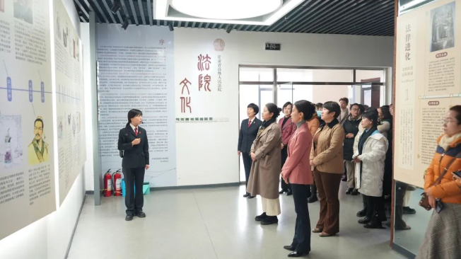 省妇联党组成员、副主席欧杰草以及省法院党组成员、副院长张媛,省高级法院政治部副主任、二级巡视员李蘋,女企业家代表,省妇联机关及直属事业单位干部和安宁区各界妇女代表一同参观了省法院文化长廊和社会主义法制宣传教育基地。讲解员详细介绍了我国法律的发展历程、各个时期的特点、甘肃法院的特色亮点工作及马锡五群众路线审判法。通过参观对坚持和发展新时代“枫桥经验”,做好维护妇女儿童合法权益起到了推动作用。
