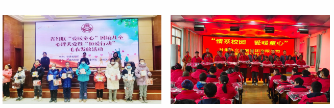 真情延续生命,爱心点燃希望。省妇联在天水秦州区、武威凉州区和定西漳县等地分别举行“恒爱行动”毛衣发放活动,为900余名贫困、留守、困境儿童送去爱心毛衣。孩子们脸上都洋溢着灿烂的笑容,纷纷表示:特别高兴能收到‘爱心妈妈’们给我们织的毛衣,让我们在寒冷的冬季感受到无比的温暖。今后会好好学习,以良好的学习成绩感恩、感谢“爱心妈妈”们对我们的关爱和希望。白银市各级妇联开展“家家幸福一元捐”“春蕾计划”项目救助金发放活动,为525户困境儿童家庭发放救助金71万余元。嘉峪关市妇联积极争取爱心企业为生活困难儿童捐赠340双鞋子。天水武山县妇联联合县工商联、甘肃九立发展集团有限公司为县特殊教育学校特殊儿童捐赠生活补贴和“爱心棉服”,价值共计3万余元。
