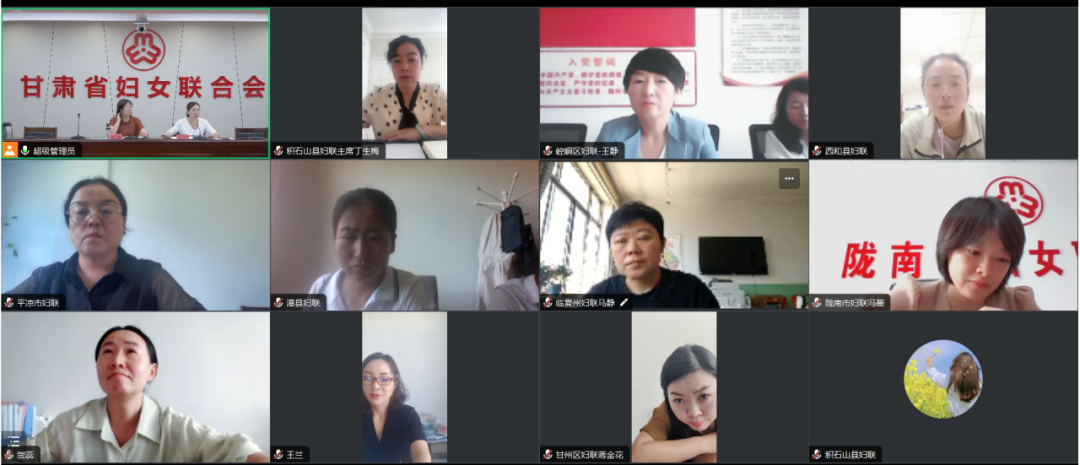 7月30日,甘肃省妇联召开“爱暖万家”公益行动项目视频推进会,围绕全国妇联关于该项目的部署要求,总结我省项目实施工作中的亮点和不足,交流经验、分析问题、明确任务,安排部署下半年项目工作任务。定西市漳县、张掖市甘州区、陇南市西和县、平凉市崆峒区、临夏州积石山县五个项目点汇报了项目实施情况、存在问题和下一步工作计划。省妇联二级巡视员周华对汇报情况进行点评,提出加强和改进项目实施工作的具体意见建议。