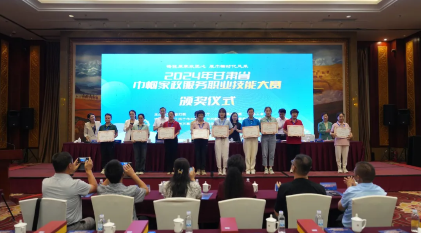 为深入贯彻习近平总书记关于家政服务业的重要指示精神,全面落实全国妇联和省委省政府决策部署,持续深化甘肃省巾帼家政服务工作,助力巾帼家政提质扩容,省妇联联合省人社厅、省发展改革委、省商务厅、省总工会举办2024年甘肃省巾帼家政服务职业技能大赛,8月29日比赛在兰州圆满落幕并举办颁奖仪式。省妇联党组书记、主席马琨出席并讲话,省人社厅党组成员、副厅长李帆,省发展改革委党组成员、副主任达选祥,省商务厅党组成员、副厅长汪德元,省总工会党组成员、副主席陈晶玉,省经济研究院院长、省妇联兼职副主席柴丽萍出席颁奖仪式,省妇联党组成员、副主席范瑞雪主持会议。
