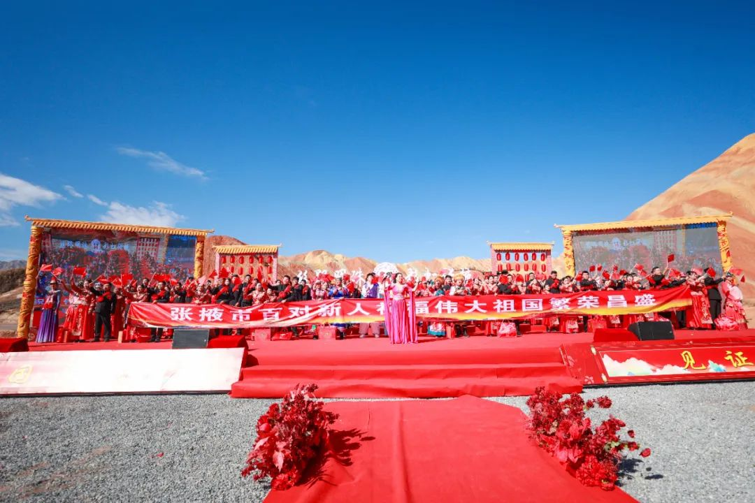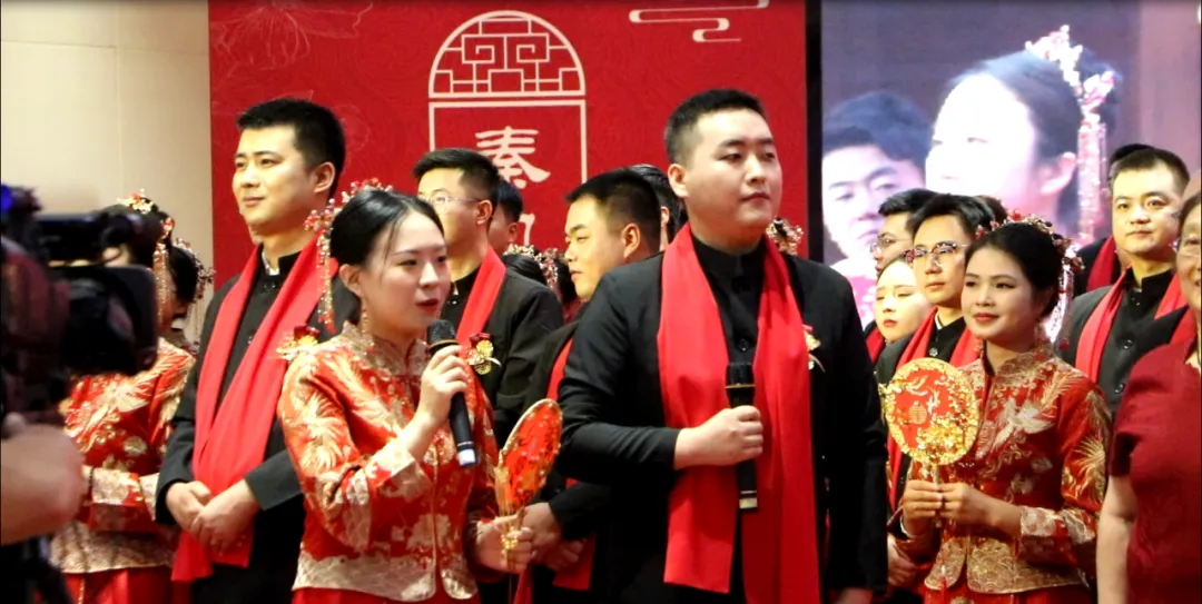 婚礼最后,新人集体合唱歌曲《我和我的祖国》,共同歌唱伟大的祖国。这一刻,纯真爱情与家国情怀同频共振,传统仪式与时代华章交相辉映!