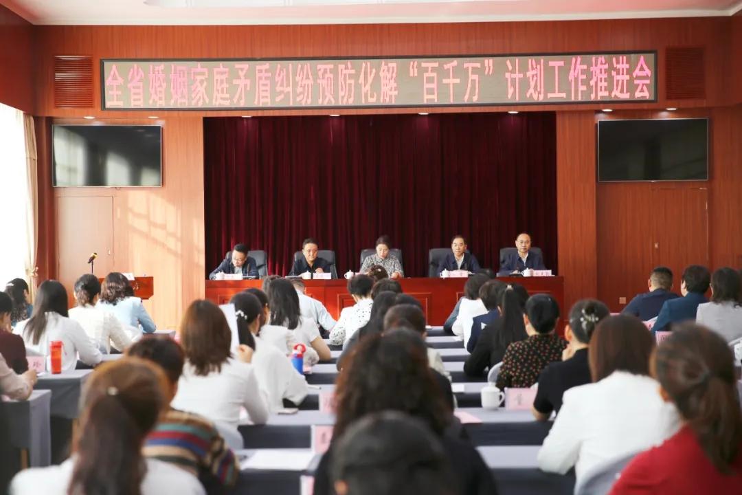 坚持和发展新时代“枫桥经验”,凝聚巾帼力量积极参与婚姻家庭矛盾纠纷预防化解。9月27日,省妇联召开全省婚姻家庭矛盾纠纷预防化解“百千万”计划工作推进会,省妇联党组成员、副主席欧杰草,省委政法委政治部主任马雷,省法院二级高级法官贺文俊出席会议并讲话,省信访局督查专员吕建锋、省公安厅治安管理局副局长张克勤出席会议。各市州妇联分管副主席、权益部长,部分县区妇联主席和优秀婚调员代表参加会议。