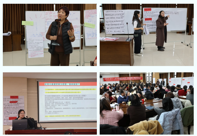 培训班上,中华女子学院杨静教授围绕儿童性安全教育的重要性及多部门联动预防青少年性侵害问题等方面进行培训授课。