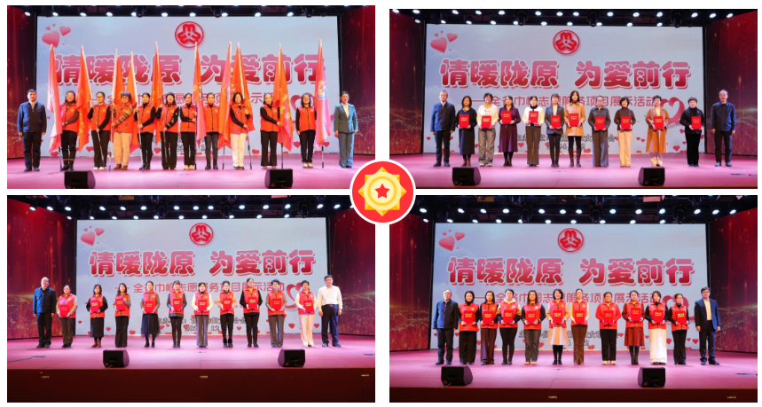 活动现场,颁发了优秀巾帼志愿者、优秀巾帼志愿服务组织及优秀案例证书,为宣传宣讲、法律维权、爱心帮扶、环境美化等10支巾帼志愿服务队授旗。