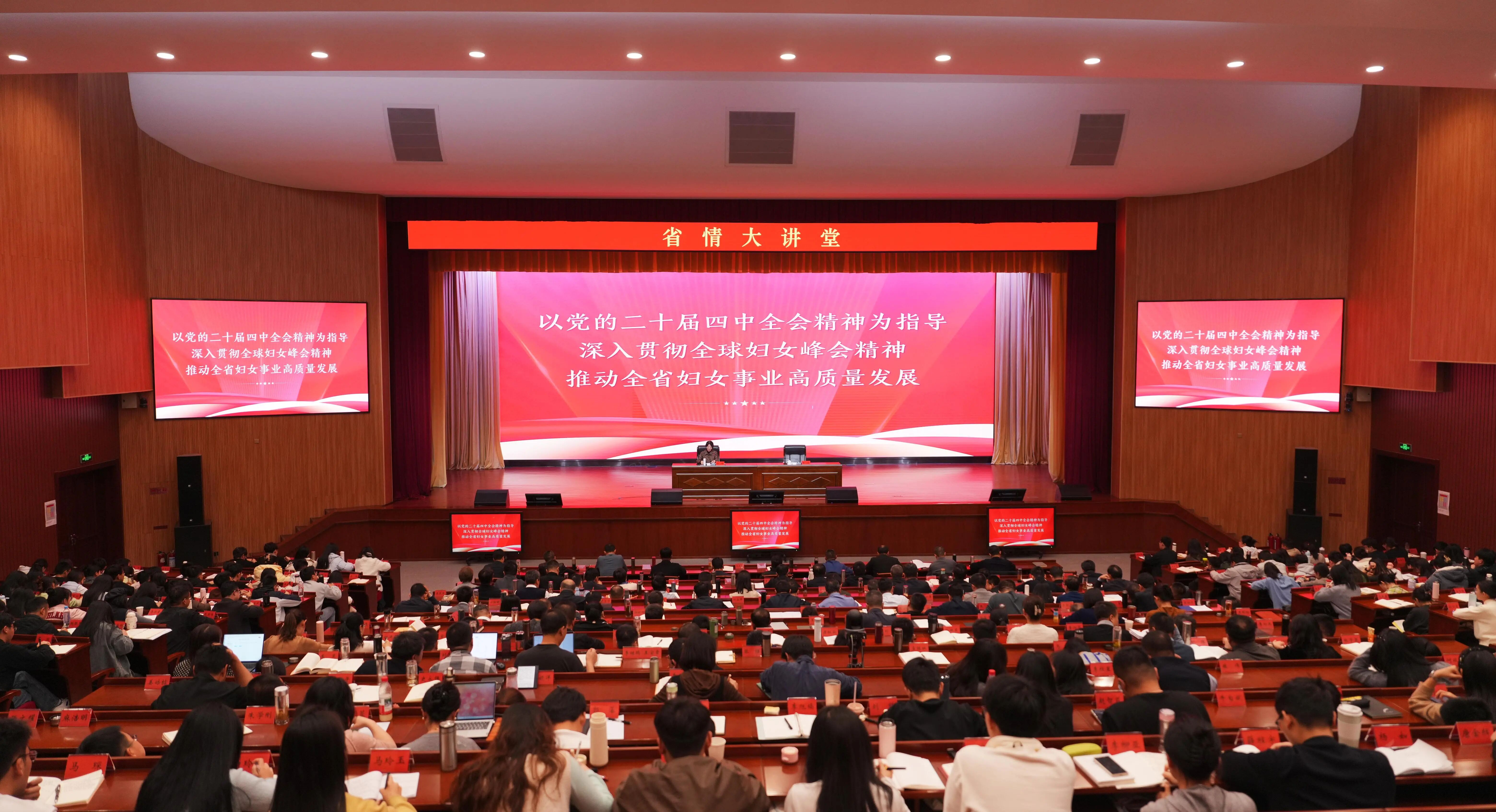 今年是男女平等基本国策实施三十周年,根据省委组织部教学安排,11月26日,省妇联党组书记、主席、省政府妇儿工委副主任马琨走进省委党校,以“贯彻男女平等基本国策 落实全球妇女峰会精神 推动全省妇女事业高质量发展”为题,为秋季主体班380多名学员作专题辅导报告。