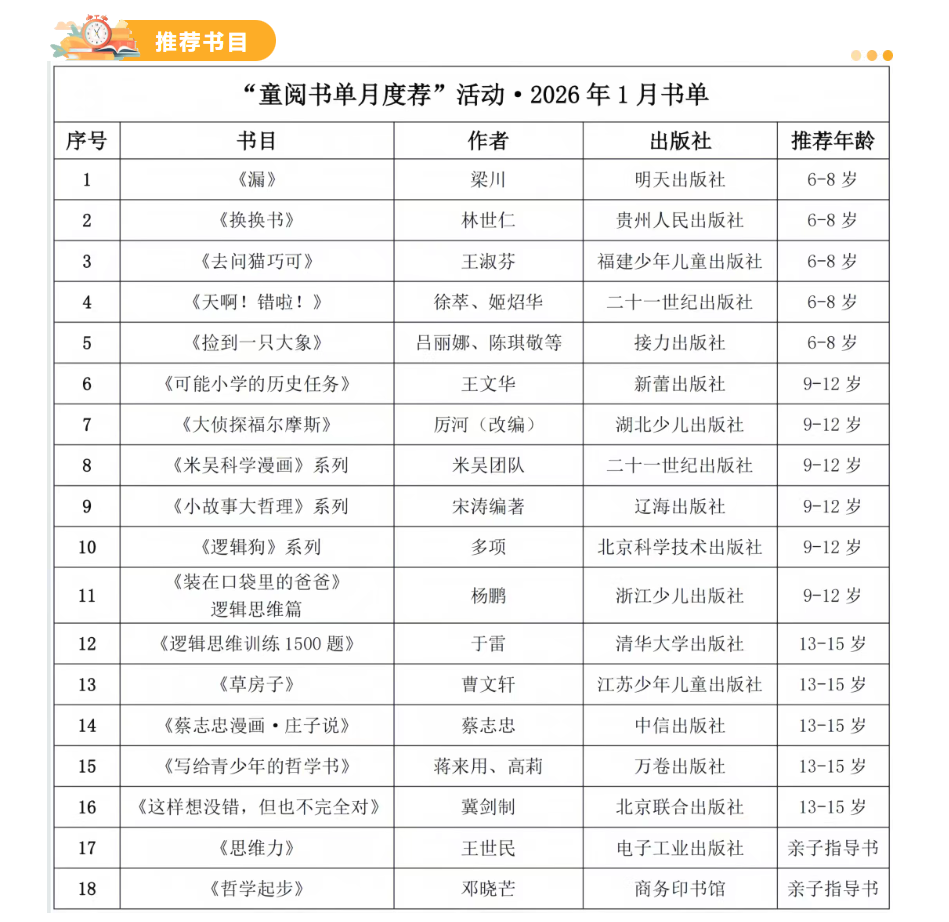 “书香飘万家·星星点灯”陇原家庭亲子阅读行动项目“童阅书单月度荐”活动·1月书单