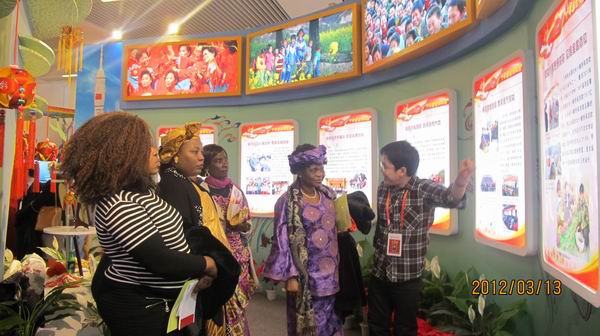 3月13日,是驻华使馆及国际机构外宾专场参观日,英国、希腊、日本、刚果金等国家驻华使馆大使、大使夫人及随同人员来到甘肃展区参观。我省工作人员用英语向外宾介绍了甘肃经济发展状况、妇女儿童十年发展成就以及省妇联的工作品牌,赠送了香包,各国大使都签名留念,展区气氛十分活跃。外宾朋友们表示,甘肃妇女儿童事业取得的成就给他们留下了很好的印象,并祝贺甘肃妇女儿童事业取得更加辉煌的成就。