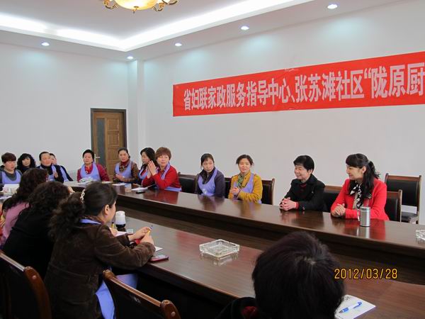 为扩大“陇原月嫂”、“陇原厨嫂”队伍,提升广大妇女就业能力,强化专业技能和服务质量,从3月中旬开始,省妇联家政服务指导中心联合省妇幼保健院举办了为期一周的“陇原月嫂”初级培训班,近57名踊跃报名的新“月嫂”参加了培训,在省妇幼保健院专家的专业培训和耐心指导下,这批学员较快的掌握了孕期、围产期、新生儿护理等专业技能。与此同时,中心联合兰州市雁滩乡张苏滩社区在社区中开展了送厨艺进社区活动,这种全新的送培训到家门口的方式,深受广大社区妇女喜爱,通过此次培训,大家不仅对中式烹饪有了全新而全面的认识和了解,还学到了红烧鱼、家常菜,多种面食等制作方法,妇女们纷纷表示这种活动不仅方便了生活,也帮助了她们新增了一项技能,为再次就业提供了更多机会与选择。