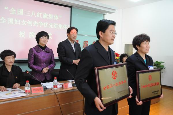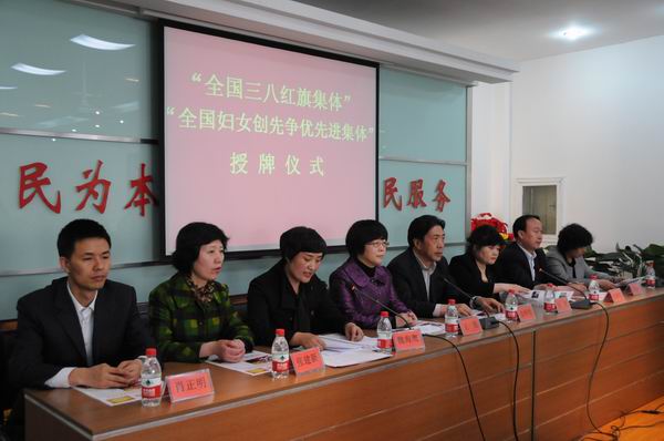 4月9日下午,省妇联党组成员、副主席王旭专程来到城关区民政局,与兰州市委常委、市政法委书记、城关区委书记金祥明一起,为获得“全国三八红旗集体”、“全国妇女创先争优先进集体”荣誉称号的兰州市城关区虚拟养老院颁发了奖牌。授牌仪式由市妇联主席王方主持,省妇联宣传部部长魏海鹰,市妇联副主席张建新,城关区委常委、办公室主任付禄代,城关区政府副区长肖正明等出席会议。