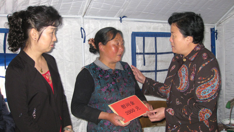 5月10日,定西市岷县突发特大冰雹山洪泥石流灾害,造成重大人员伤亡和财产损失。灾情牵动着省妇联党组和全体党员干部职工的心。省妇联党组迅速行动,开展救灾慰问和救灾物资募集活动。5月23日,省妇联党组成员、副主席朱玉兰带领省妇联机关党委书记丁文建、专职副书记李芳,带着15.925万元捐款,深入遭受特大冰雹山洪泥石流灾害的岷县灾区看望慰问受灾妇女儿童。