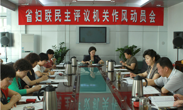2012年8月24日上午,省妇联召开效能风暴行动民主评议机关作风动员会。省妇联在家的党组成员、机关全体干部职工、下属事业单位负责人参加了会议。 省妇联党组书记、主席韩克茵作动员讲话,对民主评议机关作风工作进行了动员和安排部署。她总结了效能风暴行动开展以来取得的成效。一是宣传造势,营造效能建设氛围。二是教育引导,效能意识深入人心。三是建章立制,形成了有效的内部管理和监督约束机制。四是坚持“三个结合”,实现了行动与工作的双赢。在确保省妇联机关效能风暴行动扎实开展的同时,推动妇联各项工作迈上了新的台阶。七一前夕,省妇联荣获全省创先争优活动先进单位荣誉称号。 她对抓好民主评议机关作风提出三点意见。一是要统一思想,提高认识,真正把行动落实到省委对民主评议机关作风工作的要求上来。二是要明确任务,突出重点,扎实推进民主评议机关作风的各个阶段。三是要加强领导,健全机制,确保民主评议机关作风工作顺利推进。 省妇联党组成员、副主席朱玉兰主持会议,并宣读了《省妇联机关开展效能风暴行动民主评议机关作风实施方案》。她强调,要以部室为单位进行自查自评。各部室和全体干部职工要高度重视,部长负责,分部室组织干部职工进行自查自纠,分别制定部室和个人自查自评工作总结和整改方案。二是要全力配合省直作评办做好网上评议、单位自评、基层评议、社会评议工作,力争民主评议工作最终取得一个令人满意的结果。
