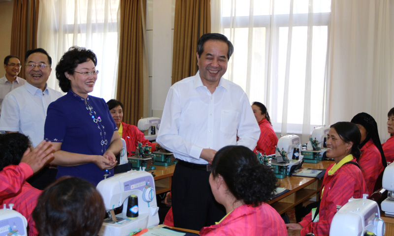 8月28日,由省委组织部和省妇联联合举办的全省第二期农村“两癌”贫困妇女创业技能和康复能力培训班在兰州开班。省委常委、组织部部长吴德刚,省委组织部副部长蔡保成,省妇联主席韩克茵,省妇联副主席朱玉兰、王旭出席开班仪式,亲切看望学员,并与学员合影留念。