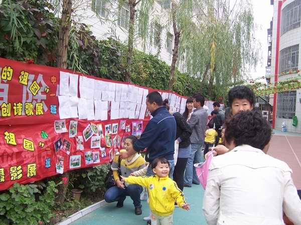 “原创诗歌诵美丽”。在活动“美丽的祖国——亲子原创诗歌展”中,第二保育院共征集到中大班幼儿歌颂祖国的亲子原创诗歌作品115篇,虽然诗歌话语还很稚嫩,但却表达了孩子们对祖国的理解认识和真情实感,内容真挚感人。 “庆祝活动贺美丽”。在“我们美丽的祖国——庆祝活动”活动中,第二保育院的全体师生共同歌唱了《中华人民共和国国歌》,各班小朋友演唱了《祖国祖国多美丽》、《国家》、《大中国》、《我会飞》等歌曲,朗诵了《我爱祖国》、《祖国多美丽》、《妈妈生日快乐》等许多原创诗歌作品,小朋友们或歌唱、或朗诵、或舞蹈,用她们最动听的歌声和最美妙的语言,赞美了我们美丽伟大的祖国,场面热烈而感人,庆祝活动取得了圆满成功! 通过这一系列的活动,不仅让孩子们感受到了节日的快乐气氛,同时也让爱祖国、爱家园的种子深深地扎根在了孩子们的内心深处。